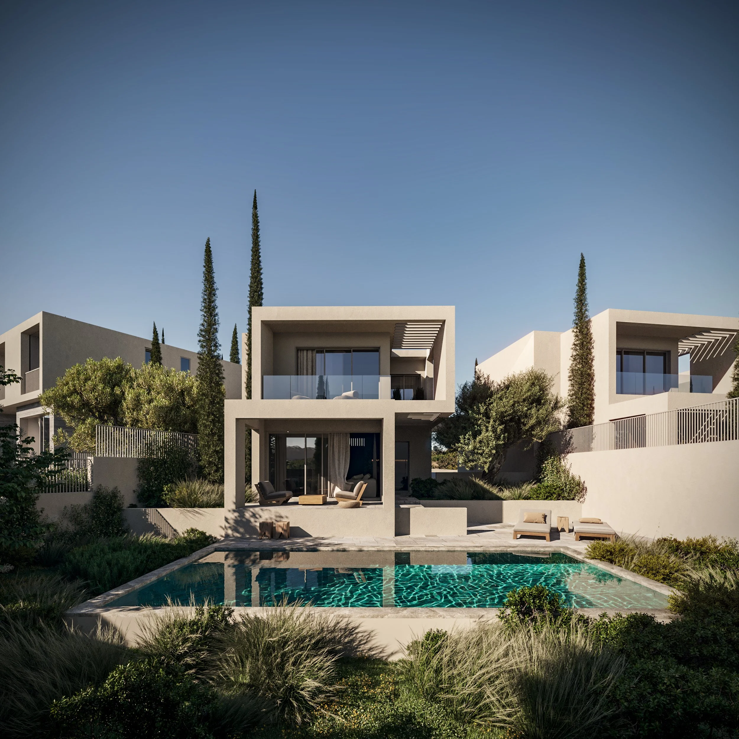 Villas de 2 ou 3 chambres avec salon Prix : À partir de 480 000 € HT Design : Architecture ultra-moderne (pierre, marbre, bois) Extérieur : Grand jardin privé (Option piscine à débordement : +35 000 € HT)